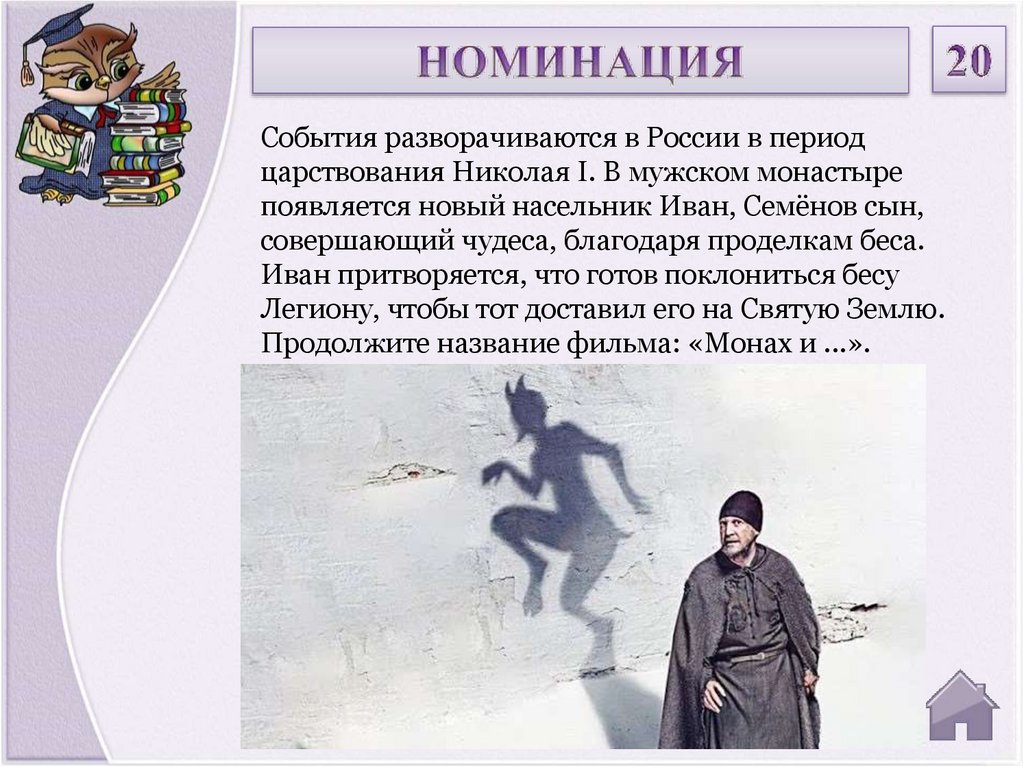 Продолжите название фильма: «Монах и ...».