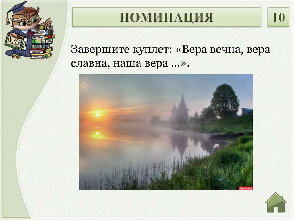 Завершите куплет: «Вера вечна, вераславна, наша вера …».