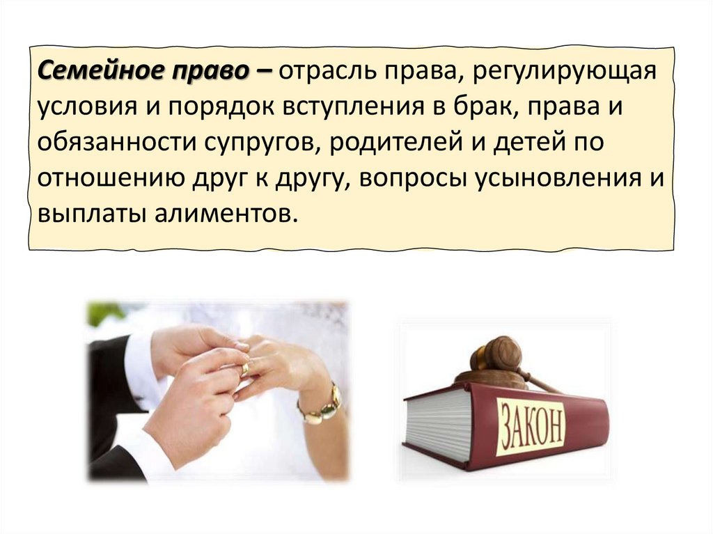Семейное право – отрасль права, регулирующаяусловия и порядок вступления в брак, права и