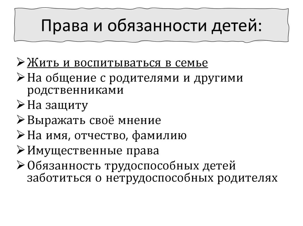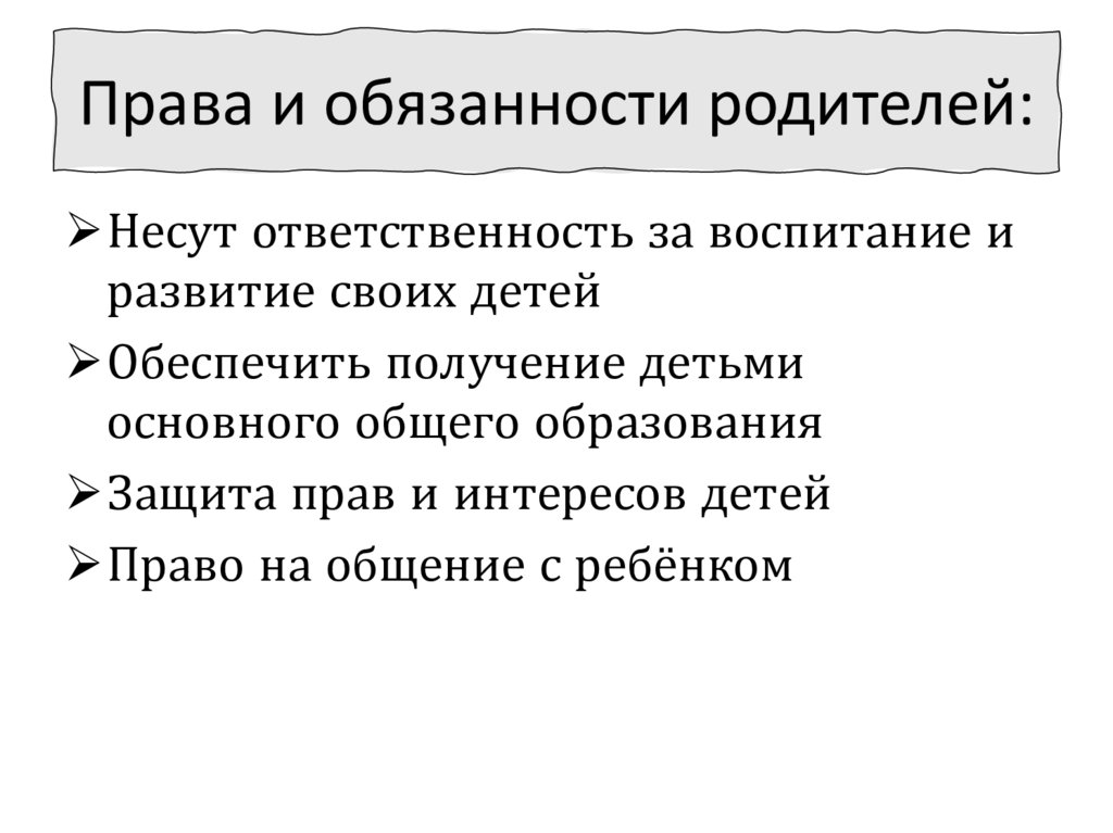 Права и обязанности родителей:Несут ответственность за воспитание и