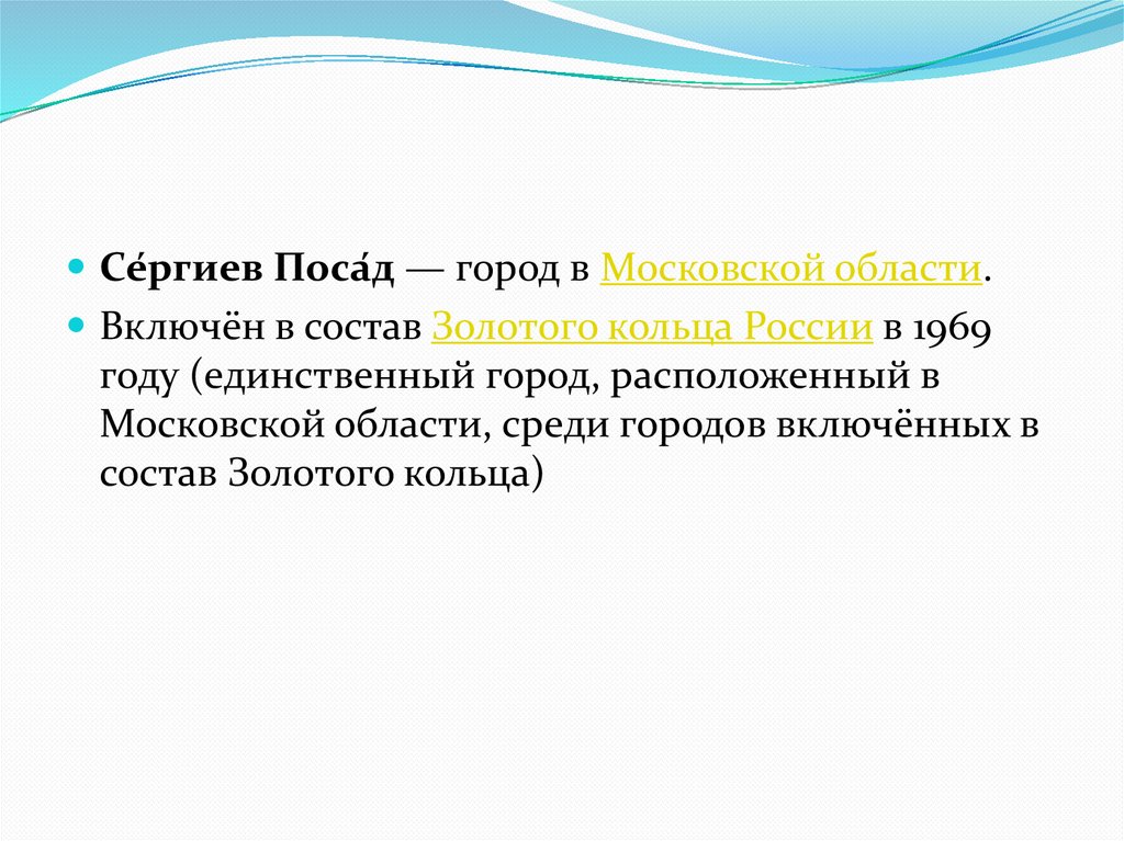 Се́ргиев Поса́д — город в Московской области.Включён в состав Золотого кольца России в 1969
