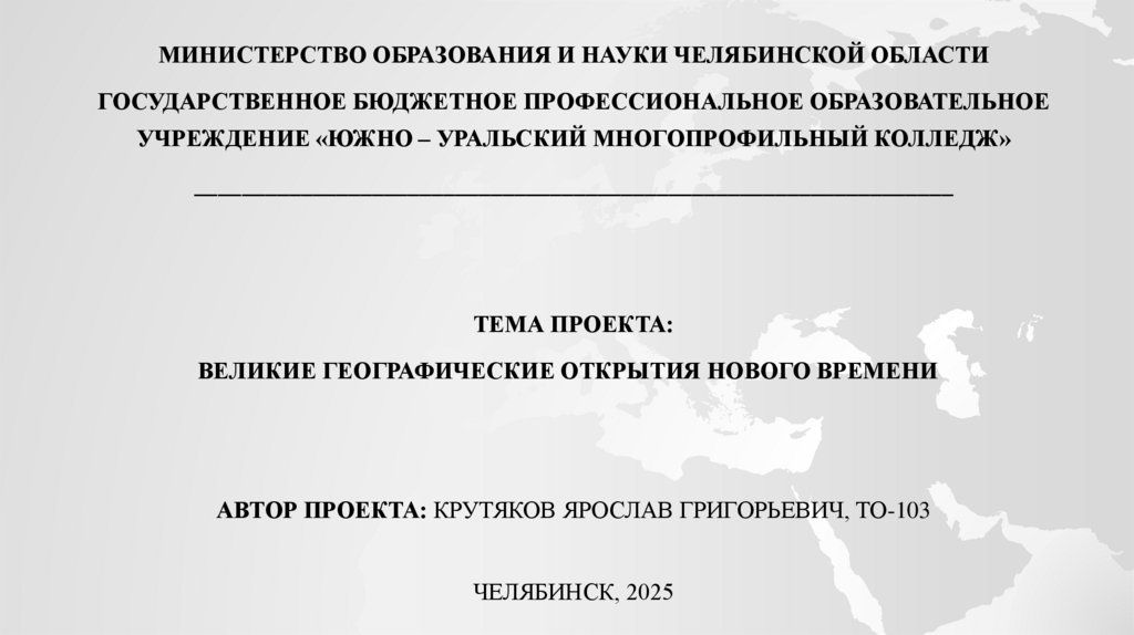 ВЕЛИКИЕ ГЕОГРАФИЧЕСКИЕ ОТКРЫТИЯ НОВОГО ВРЕМЕНИ