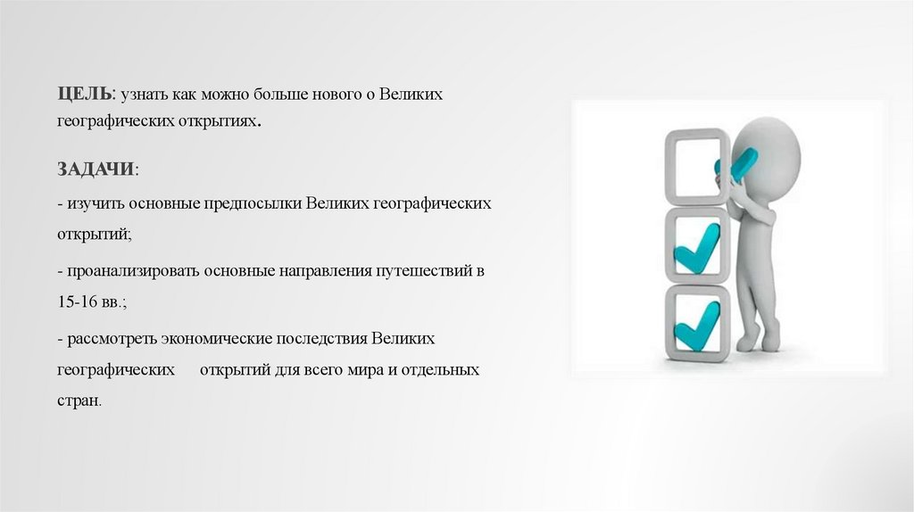 ЦЕЛЬ: узнать как можно больше нового о Великихгеографических открытиях.