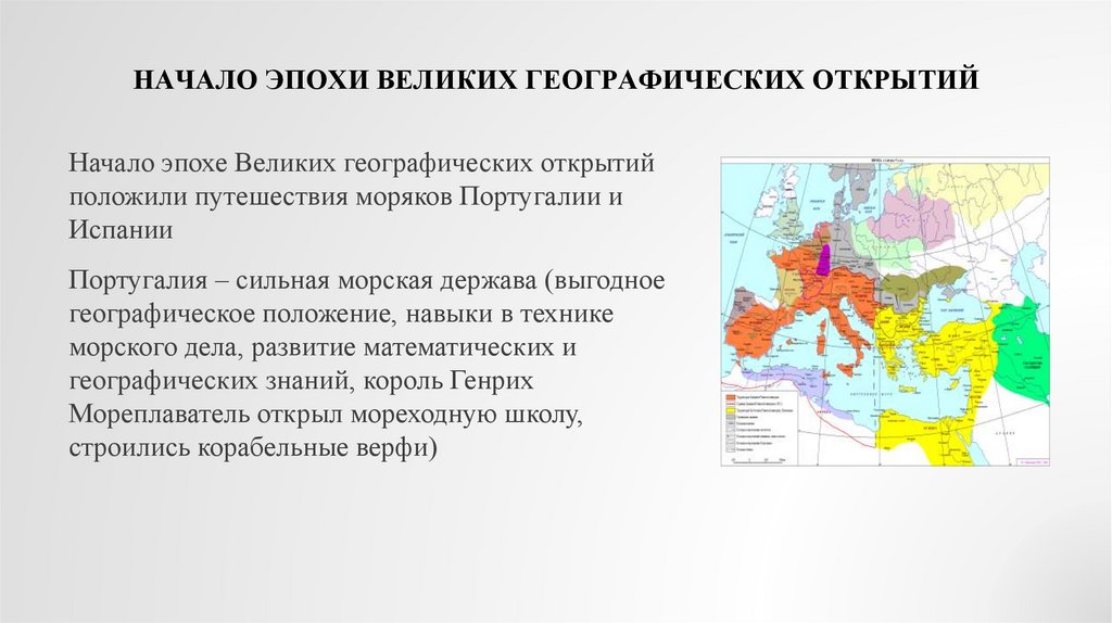 НАЧАЛО ЭПОХИ ВЕЛИКИХ ГЕОГРАФИЧЕСКИХ ОТКРЫТИЙНачало эпохе Великих географических открытий