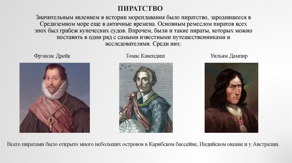 Всего пиратами было открыто много небольших островов в Карибском бассейне, Индийском океане и у Австралии.