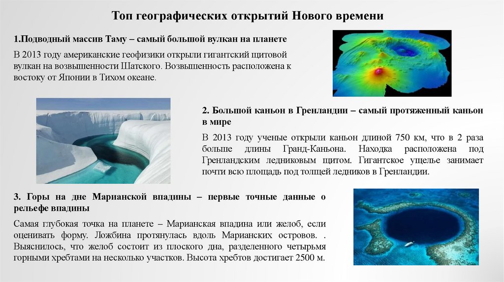 Топ географических открытий Нового времени1.Подводный массив Таму – самый большой вулкан на планете