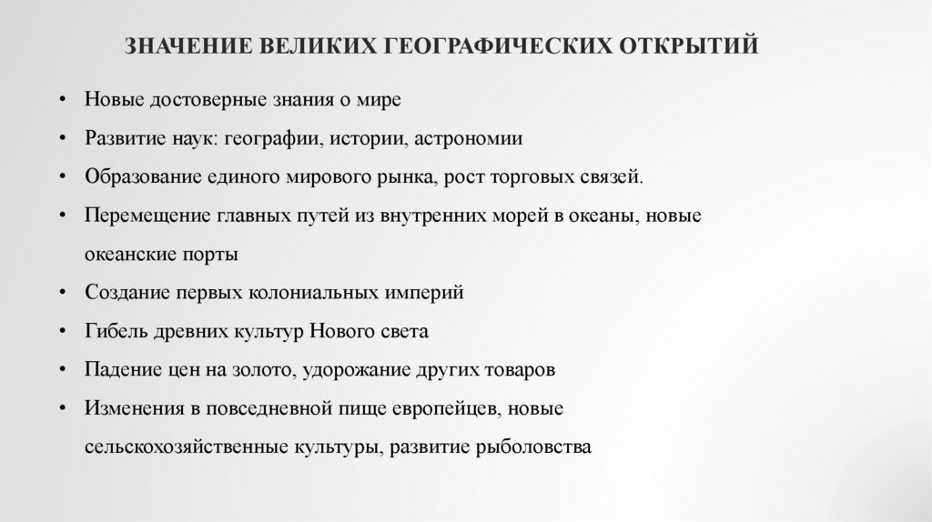 ЗНАЧЕНИЕ ВЕЛИКИХ ГЕОГРАФИЧЕСКИХ ОТКРЫТИЙ• Новые достоверные знания о мире