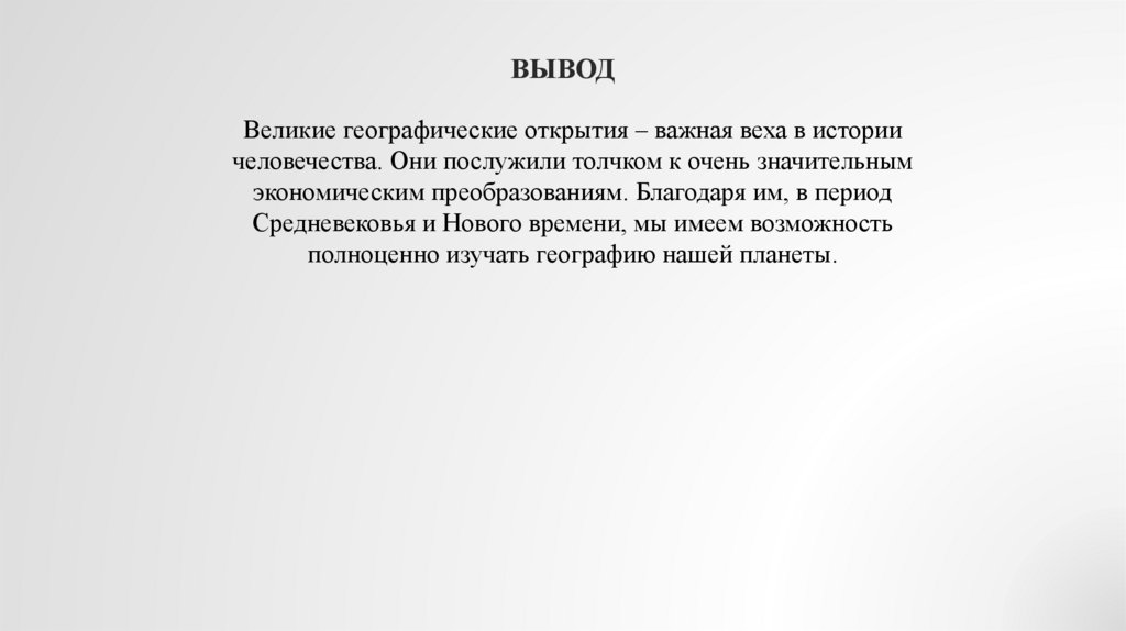 ВЫВОДВеликие географические открытия – важная веха в истории