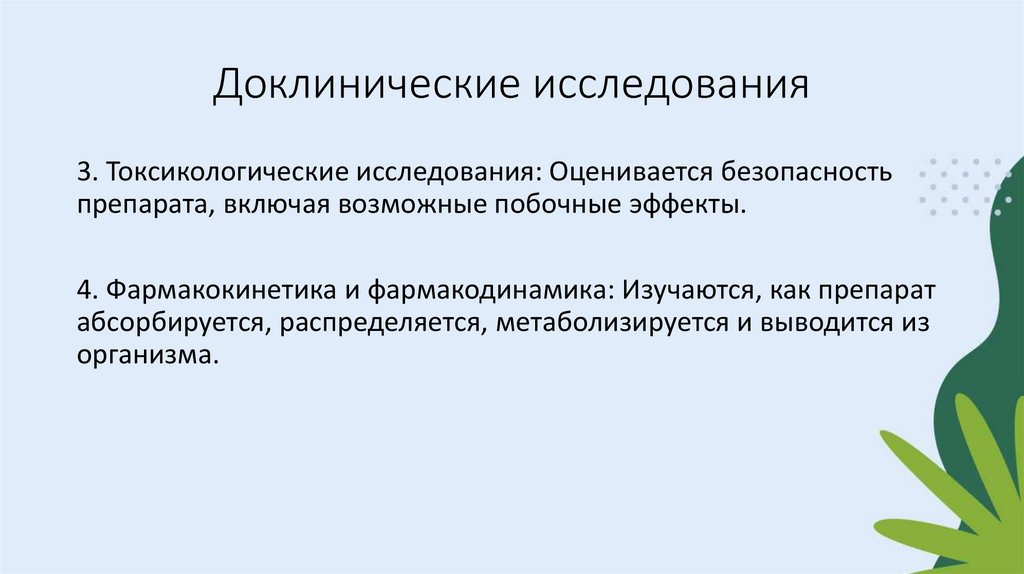 Доклинические исследования3. Токсикологические исследования: Оценивается безопасность