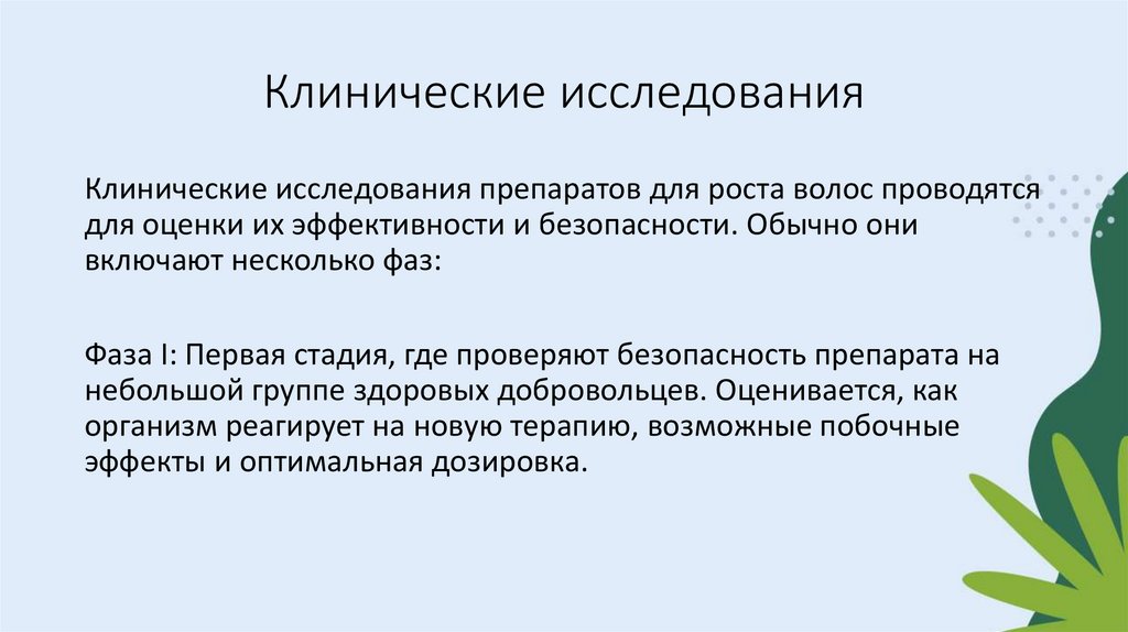 Клинические исследованияКлинические исследования препаратов для роста волос проводятся