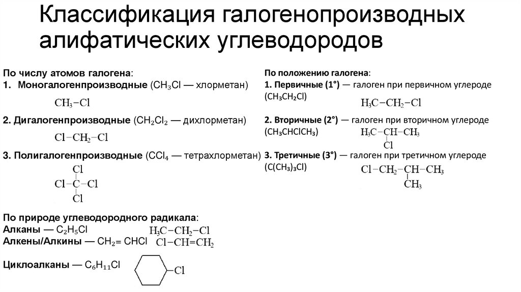 Классификация галогенопроизводныхалифатических углеводородов