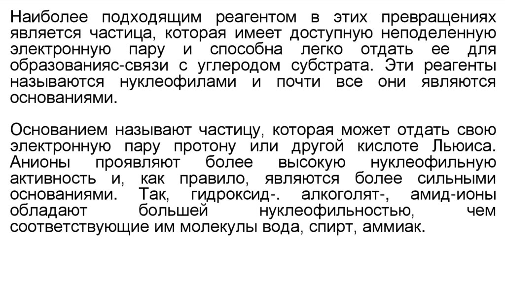 Наиболее подходящим реагентом в этих превращенияхявляется частица, которая имеет доступную неподеленную