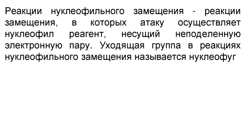 Реакции нуклеофильного замещения - реакциизамещения, в которых атаку осуществляет
