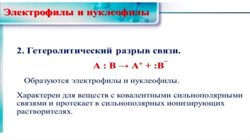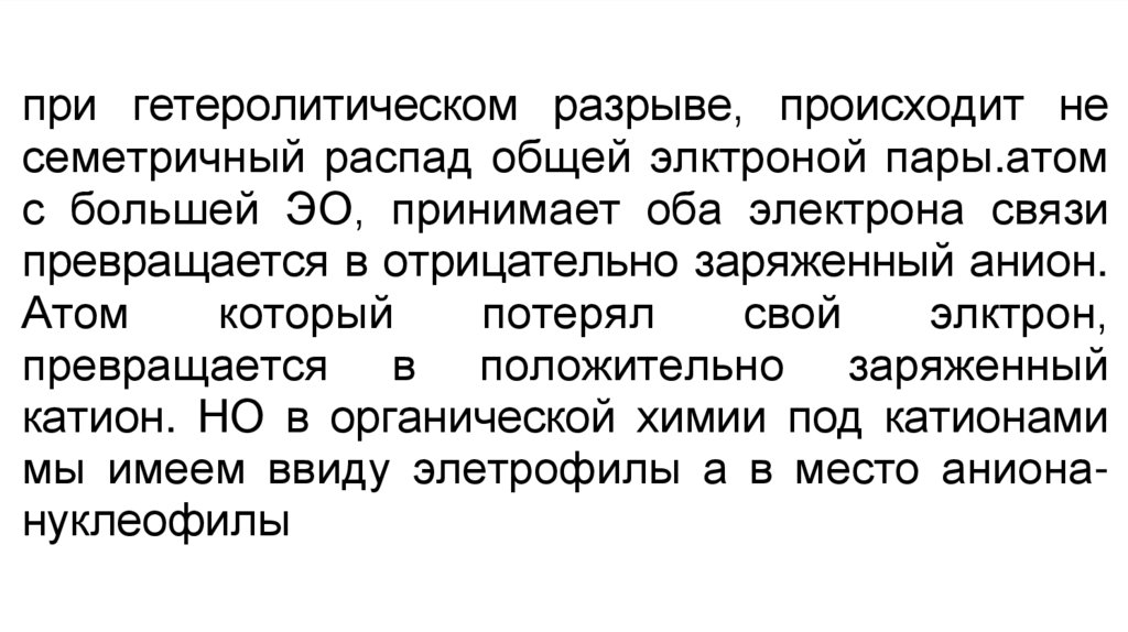 при гетеролитическом разрыве, происходит несеметричный распад общей элктроной пары.атом