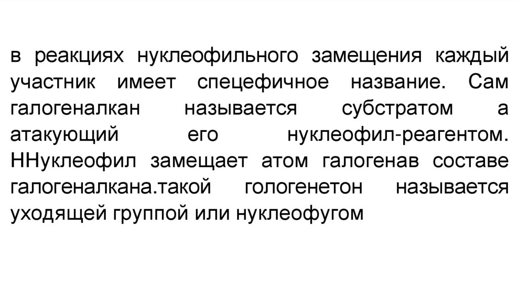 в реакциях нуклеофильного замещения каждыйучастник имеет спецефичное название. Сам