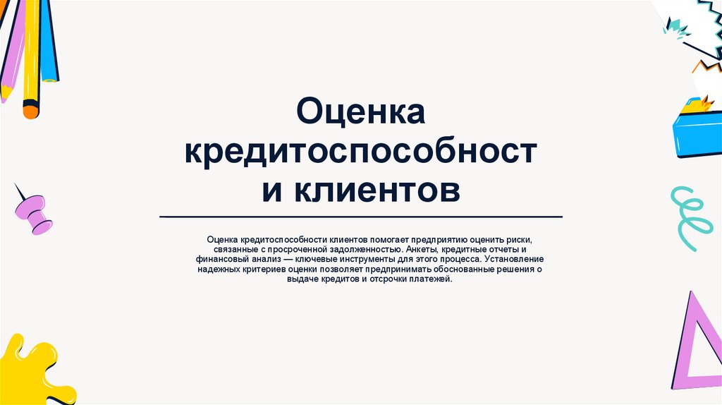 Оценка кредитоспособности клиентов помогает предприятию оценить риски,
