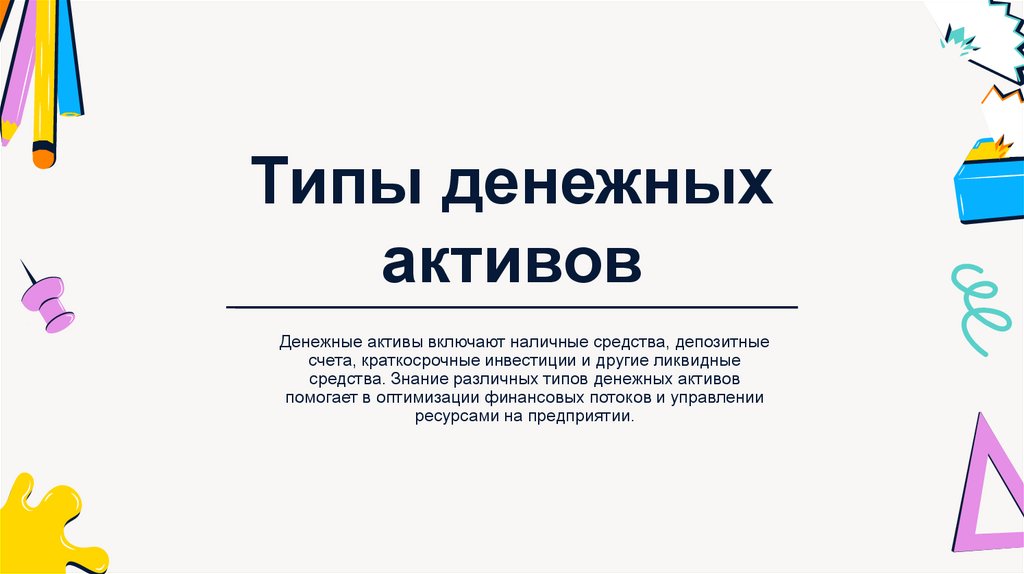 средства. Знание различных типов денежных активов