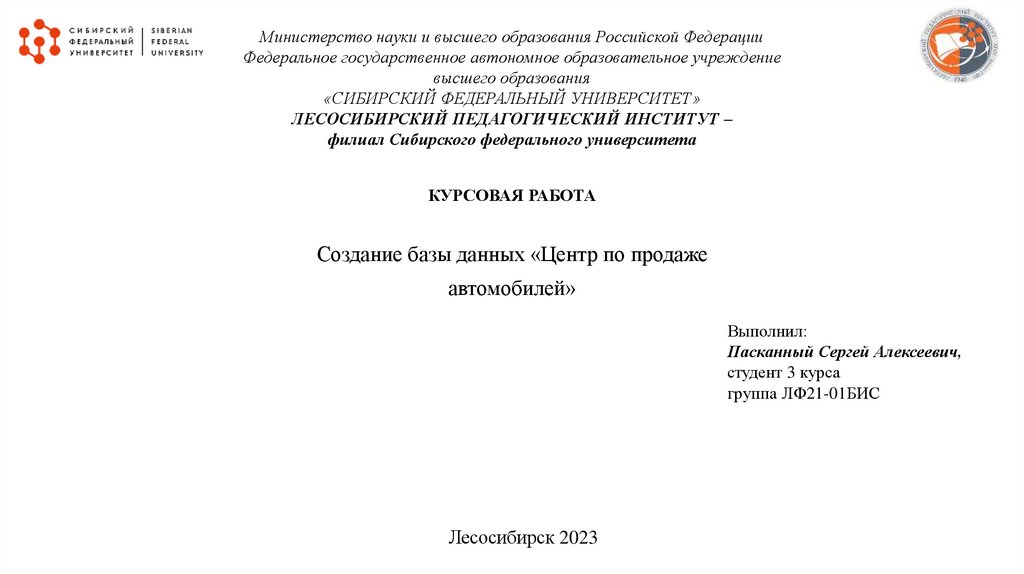 «СИБИРСКИЙ ФЕДЕРАЛЬНЫЙ УНИВЕРСИТЕТ»