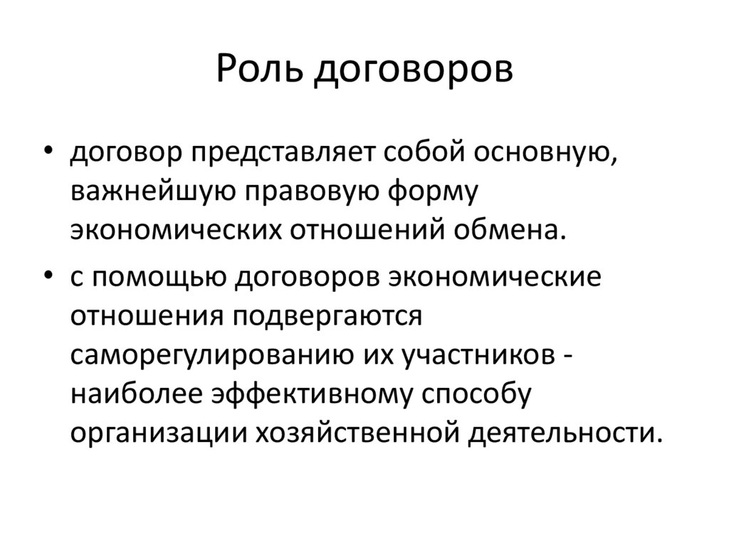 Роль договоров• договор представляет собой основную,
