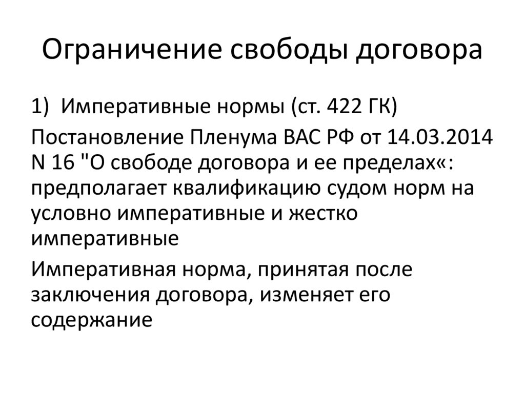 Ограничение свободы договора1) Императивные нормы (ст. 422 ГК)