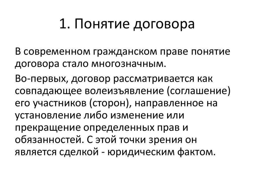 1. Понятие договораВ современном гражданском праве понятие