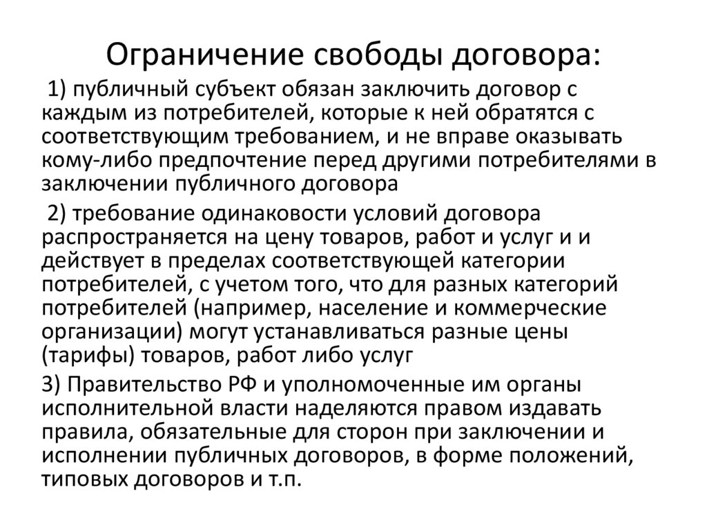 - Свобода в заключении договора;