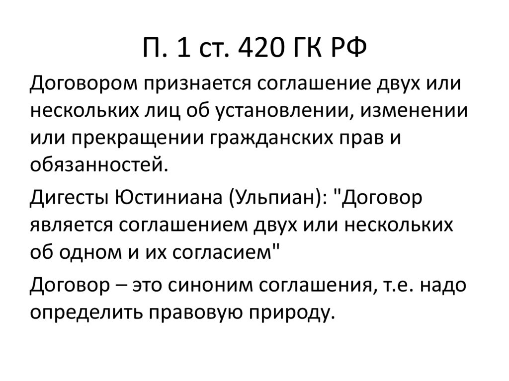 П. 1 ст. 420 ГК РФДоговором признается соглашение двух или
