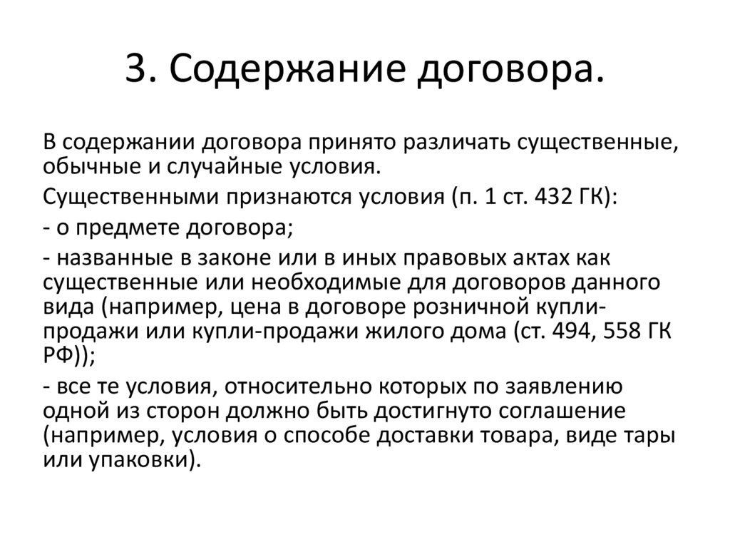 3. Содержание договора.