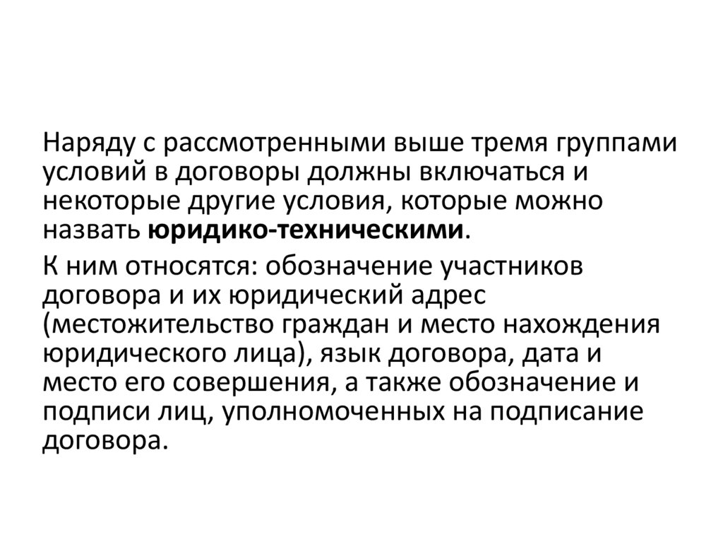 Общие положения о договоре