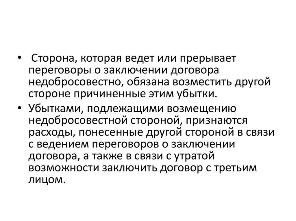 сторон, которое влечет для другой стороны такой ущерб,