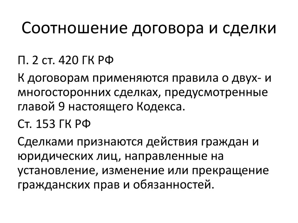 Соотношение договора и сделкиП. 2 ст. 420 ГК РФ