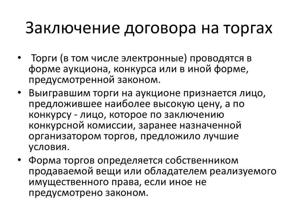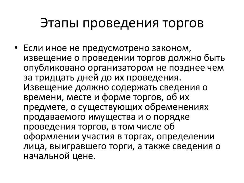 Этапы проведения торгов• Если иное не предусмотрено законом,