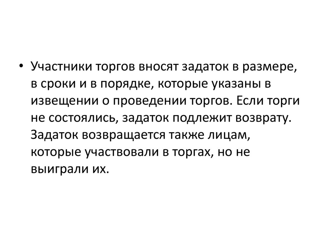• Участники торгов вносят задаток в размере,в сроки и в порядке, которые указаны в