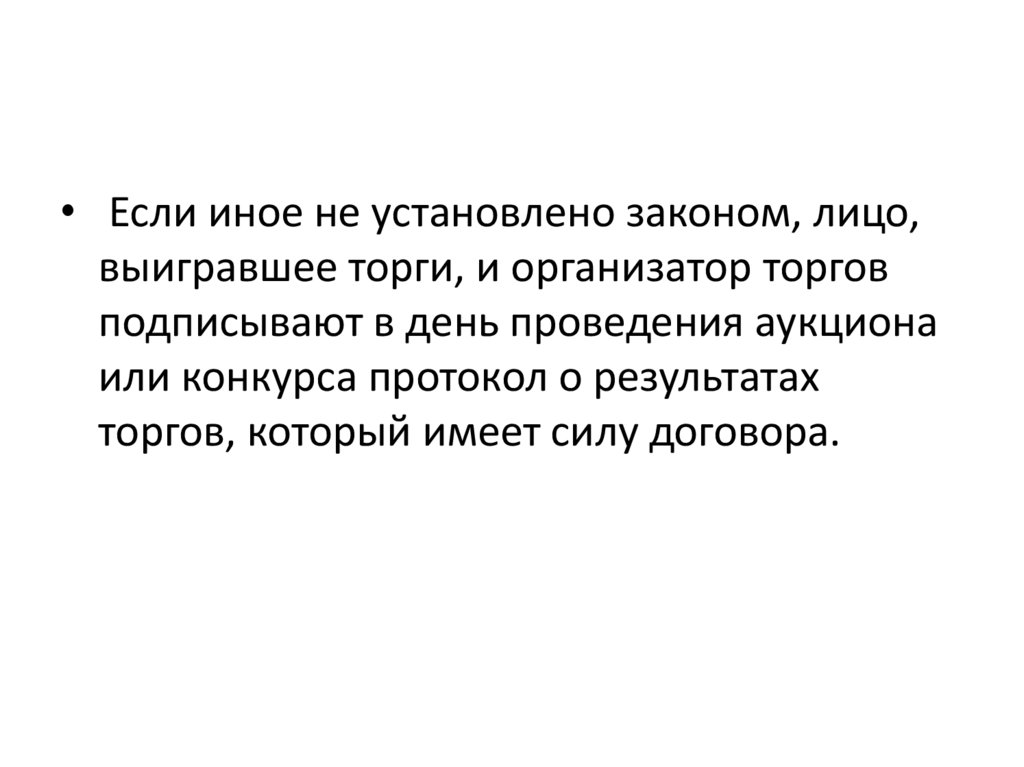 • Если иное не установлено законом, лицо,выигравшее торги, и организатор торгов