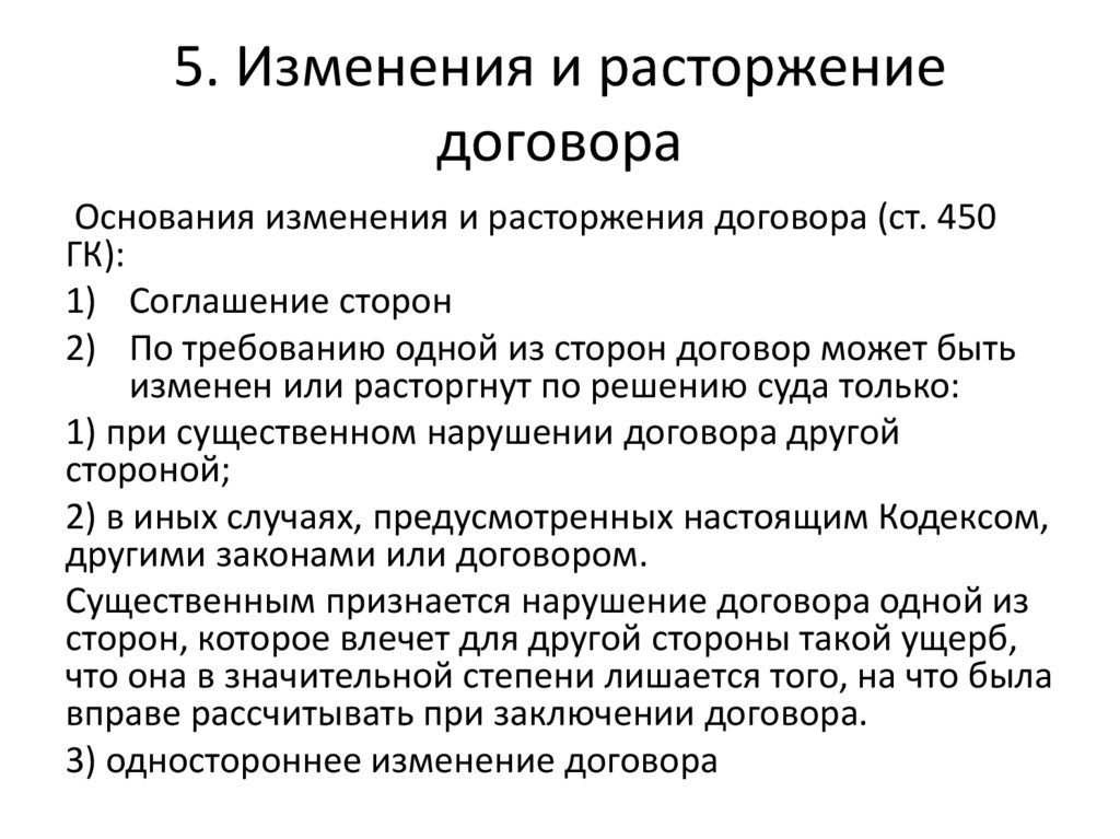 5. Изменение и расторжение договора.