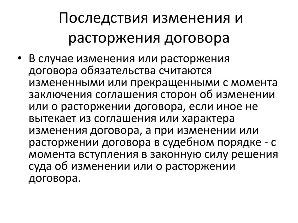 Последствия изменения ирасторжения договора