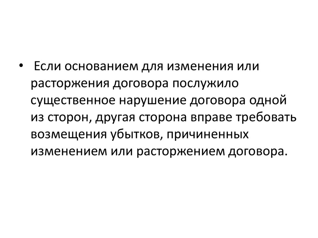 • Если основанием для изменения илирасторжения договора послужило