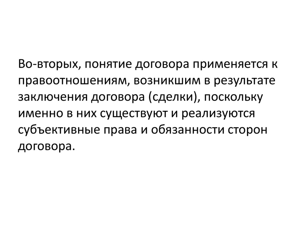 Во-вторых, понятие договора применяется кправоотношениям, возникшим в результате