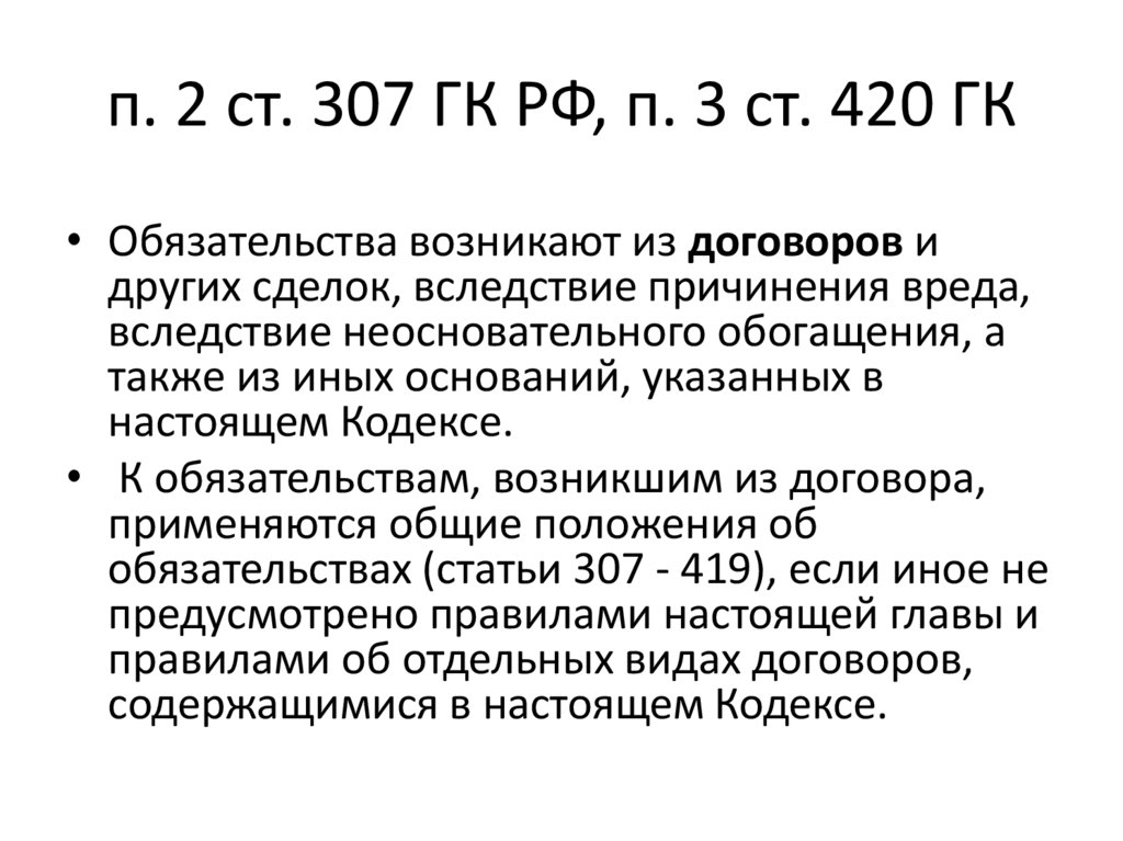 п. 2 ст. 307 ГК РФ, п. 3 ст. 420 ГК• Обязательства возникают из договоров и