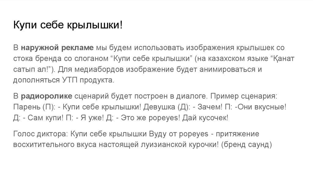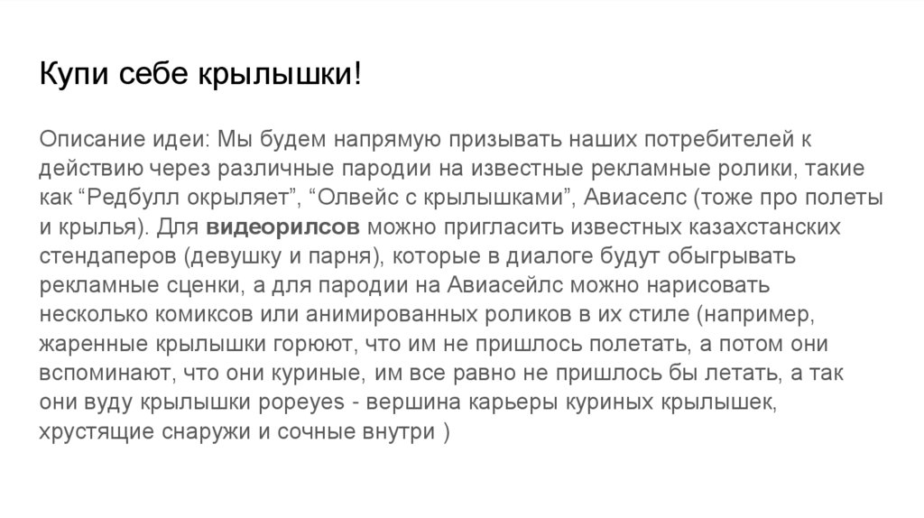 Купи себе крылышки!Описание идеи: Мы будем напрямую призывать наших потребителей к