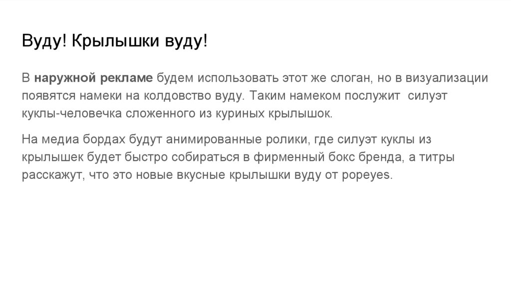 Вуду! Крылышки вуду!В наружной рекламе будем использовать этот же слоган, но в визуализации