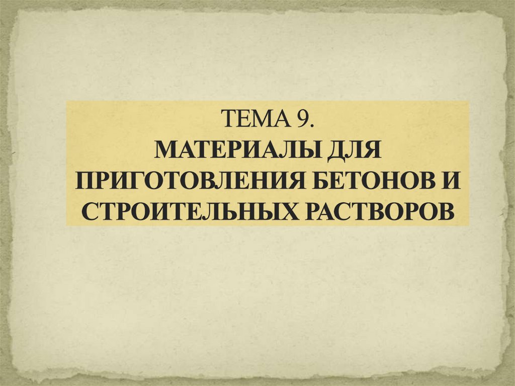 1. ТЕМА 9. Материалы для приготовления бетонов и строительных растворов