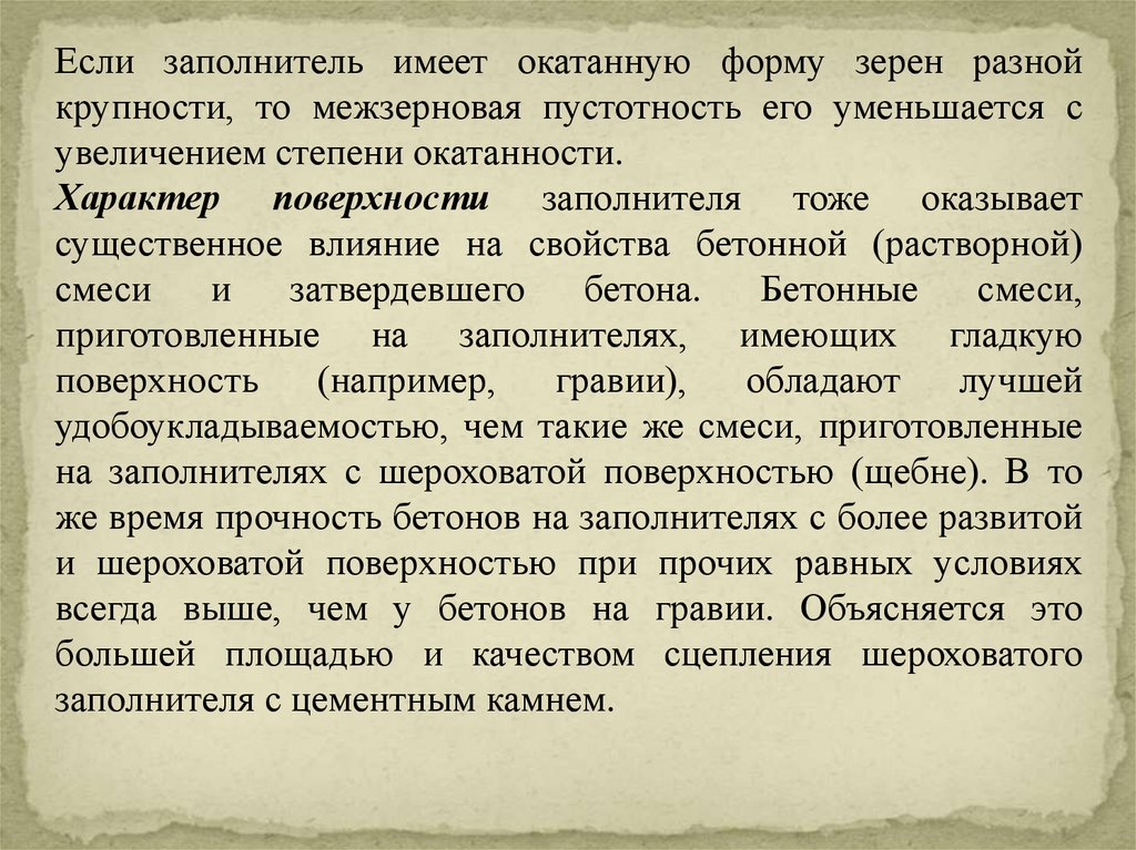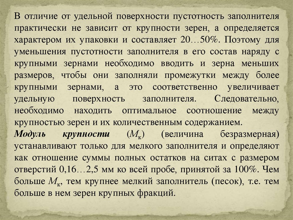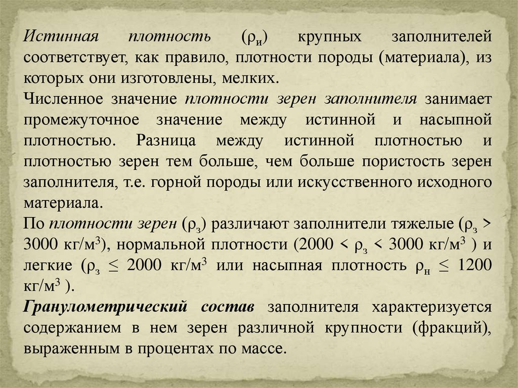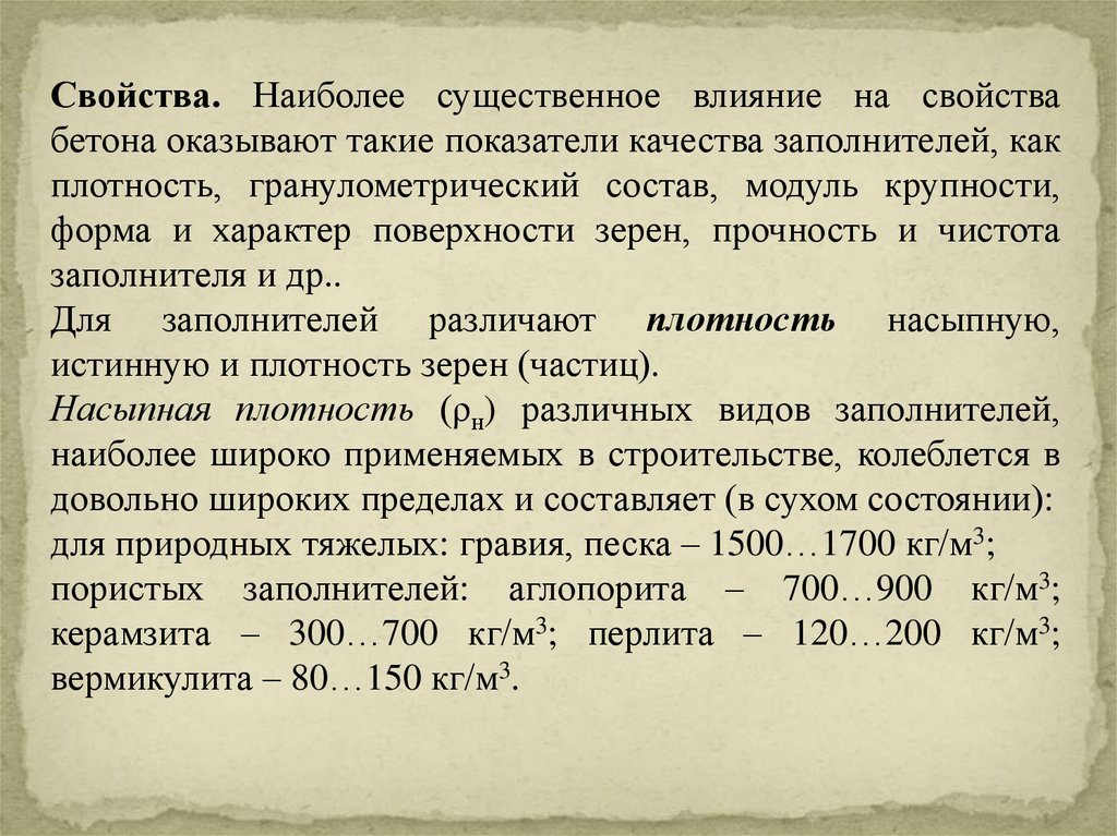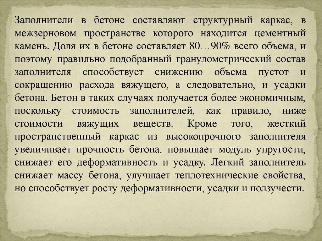 Заполнители представляют собой рыхлую смесь зеренминерального или органического происхождения, размеры
