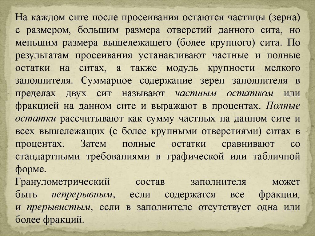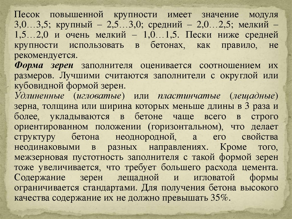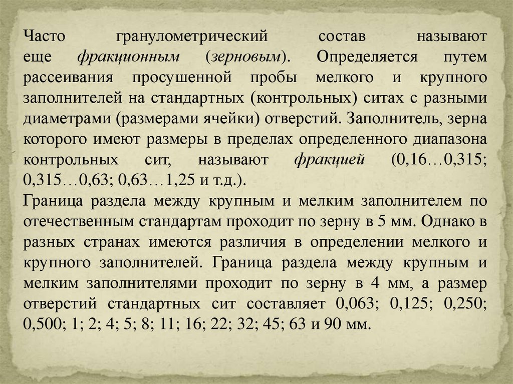 К крупным относят заполнители с крупностью зерен не менее4 мм, мелким – не более 4 мм.