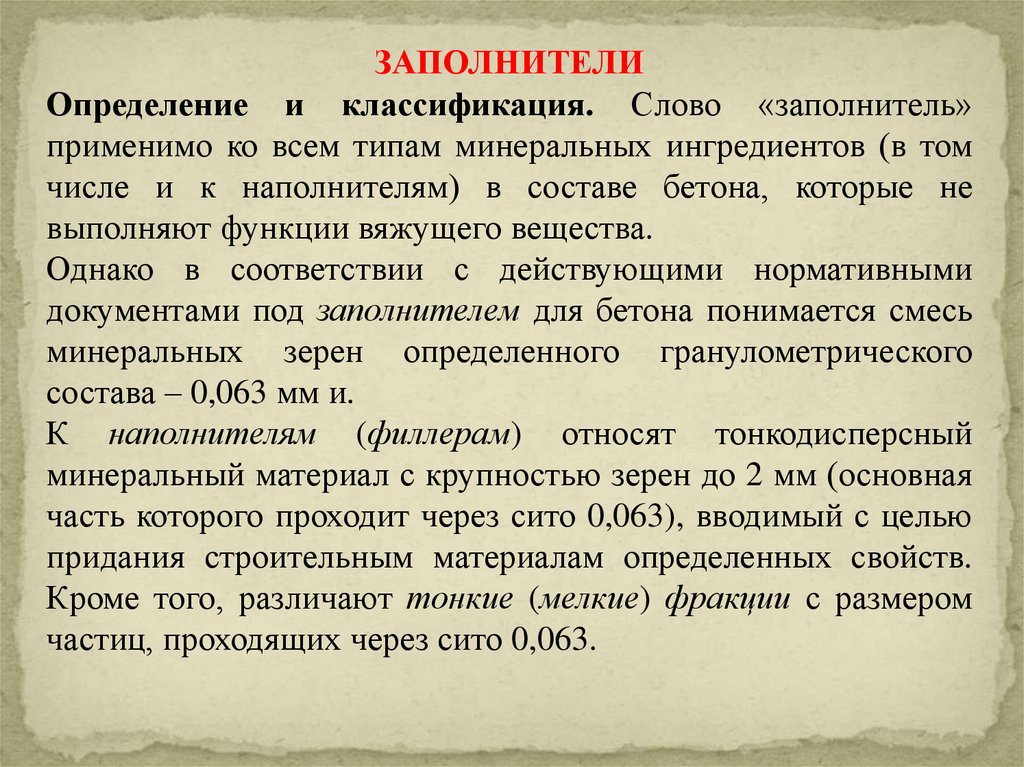 ЗАПОЛНИТЕЛИОпределение и классификация. Слово «заполнитель»