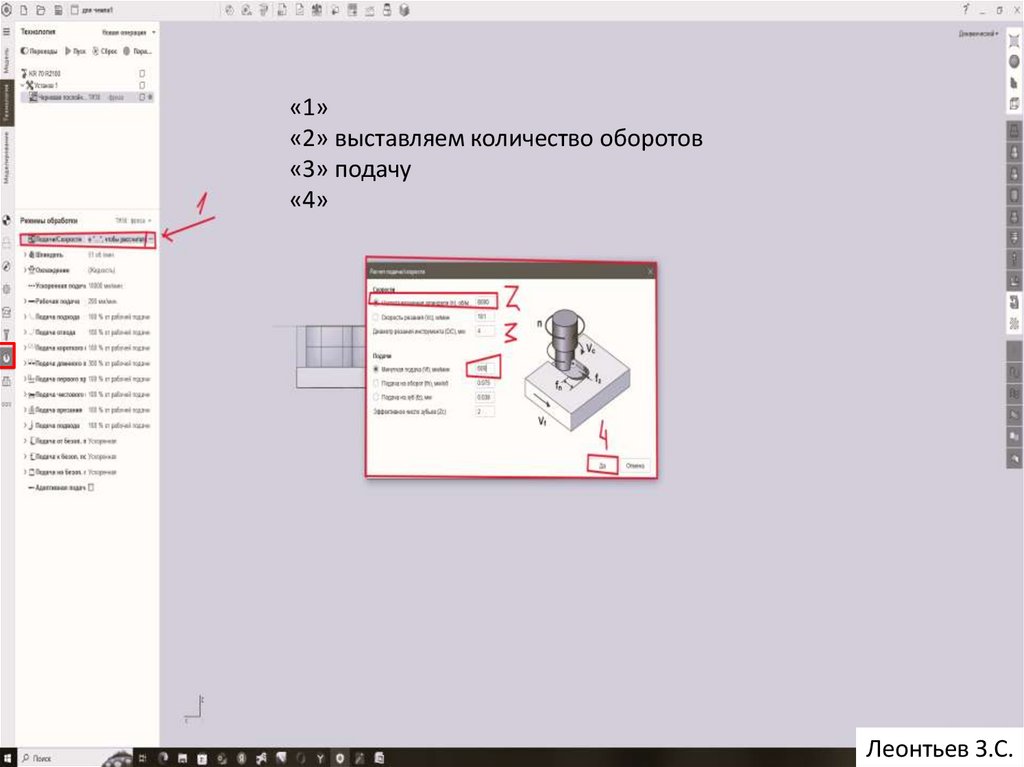 Далее настраиваем параметры резанияЛеонтьев З.С.