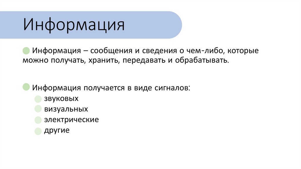 ИнформацияИнформация – сообщения и сведения о чем-либо, которые