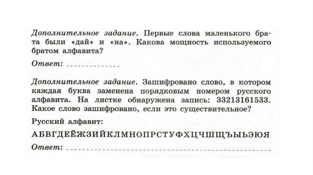 Мощность алфавита – это количество входящих в него символов