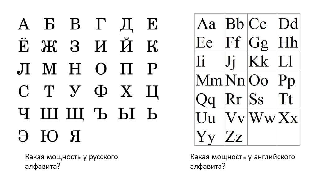 Какая мощность у русскогоалфавита?