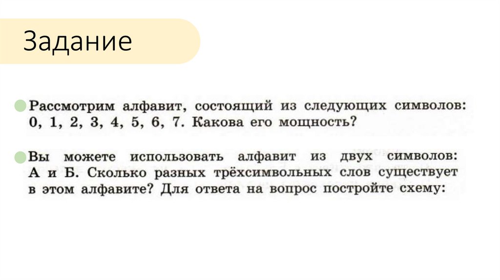 Алфавит – набор отличных друг от друга символов, используемых